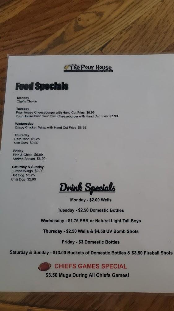 Welcome to The Pour House Bar and Grill, your go-to destination for delicious flavors and a vibrant atmosphere in Shawnee, KS. Enjoy a diverse menu featuring mouthwatering grilled dishes and traditional favorites, perfect for lunch or dinner. Unwind on our cozy patio, savor exceptional cocktails, and explore an extensive beer selection. Join us for live music, engaging games, and fast service in a laid-back setting that's great for groups or a solo outing. With accessibility options and happy hour specials, The Pour House promises a memorable dining experience for everyone. Come see why we're a local favorite!